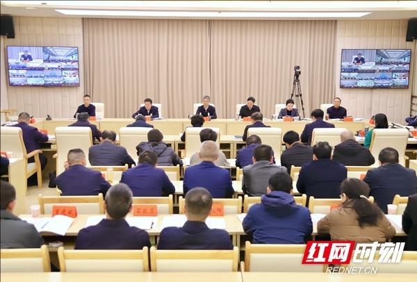 会议以视频形式召开,各县市区设分会场。市领导肖拥军、杨志慧、胡小刚、曾建华、罗玉梅、冯东旺、贺源、易洪海、余勋伟、朱敏、段雪梅、杨博理出席,市委常委、常务副市长龚红果主持。