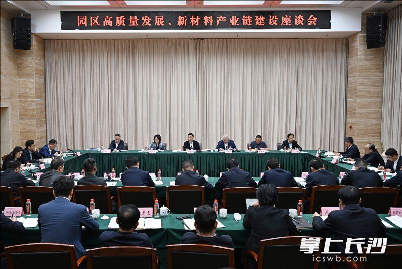 4月22日,长沙市委副书记、市长陈博彰前往望城经开区,调研园区高质量发展和新材料产业链建设并召开座谈会,听取专家和企业意见建议。市政协主席、市新材料产业链链长刘新良,副市长钱丽霞,市政府秘书长许凡参加。